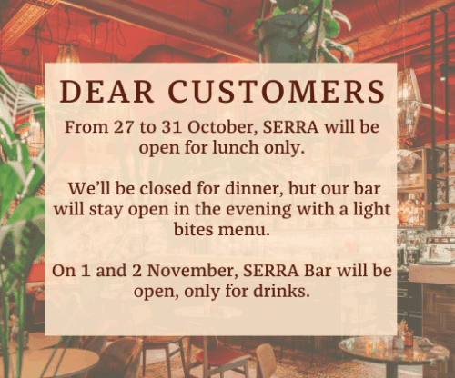 We offer a special menu for children until the age of 12 for 29 EUR per person. Kindly contact us for more information on info@serrabrussels.be